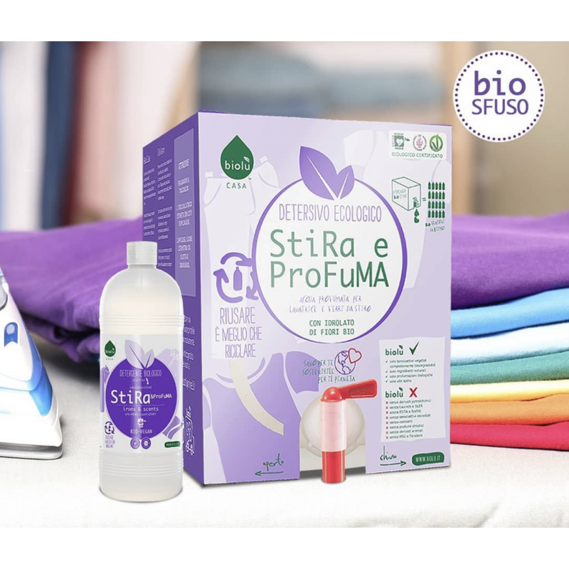 Acqua profumata da usare diluita come ammorbidente o come acqua da stiro. Lascia sul bucato un fresco profumo. E' indicato per profumare anche i capi indossati da persone che hanno una pelle molto delicata e ipersensibile ai profumi o agli ammorbidenti.
