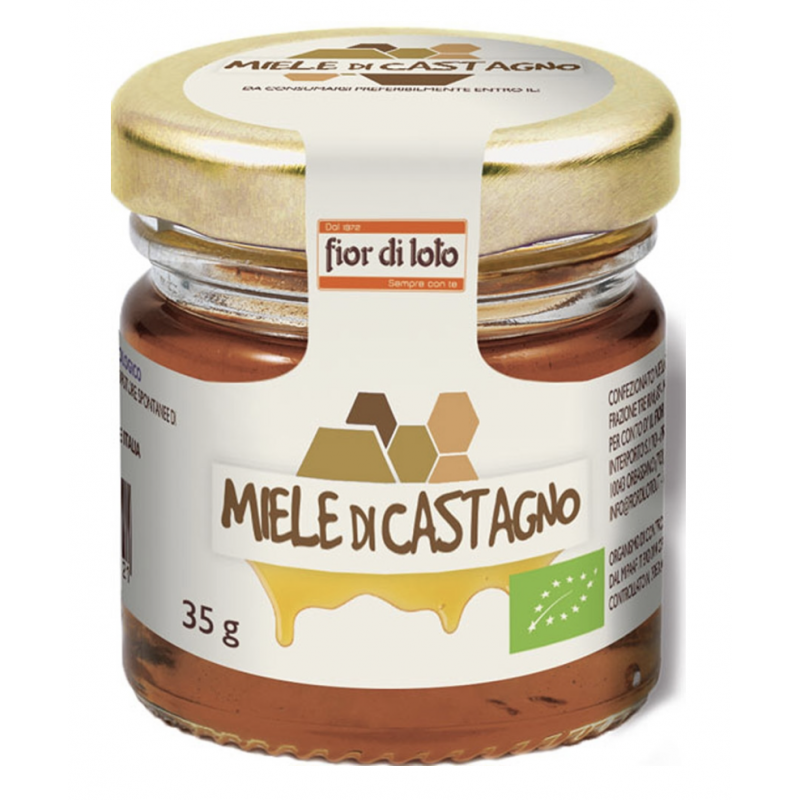 Tutta la bontà del miele italiano di castagno in formato "mini". Il miele di castagno ha un colore scuro con tonalità rossicce, e un sapore amaro, contrariamente rispetto ad altri mieli.