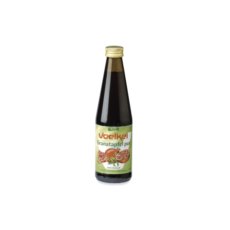 Il Succo di melograno Voelkel è un succo proveniente da agricoltura biologica, senza zuccheri aggiunti, ricco di vitamine come la vitamina A, E, C e B, ricco di antiossidanti naturali e sali minerali come il potassio, zinco, rame e fosforo. Ottimo aiuto per mantenere sotto controllo i livelli di colesterolo, abbassare la pressione, proteggere i reni, depurare l'organismo, per il sistema immunitario ed è considerato il frutto della fertilità da millenni. Può essere bevuto in qualsiasi momento della giornata da tutti, bambini e adulti.