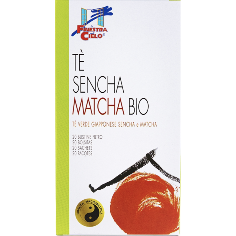 Tè verde sencha in foglie 97.5%, tè verde matcha in polvere* 2,5%. (*da agricoltura biologica)