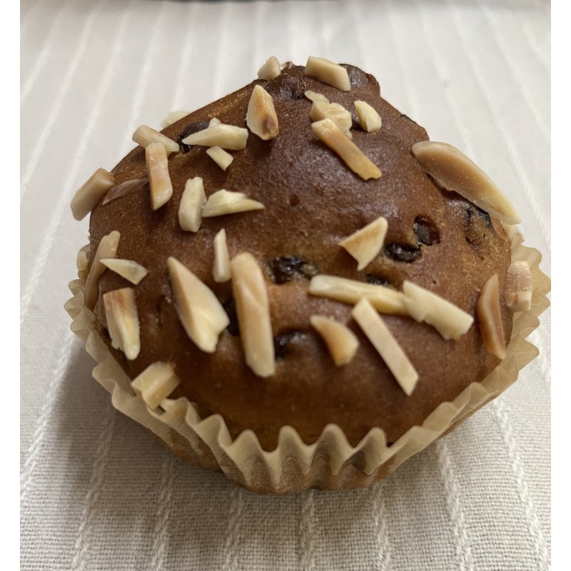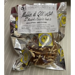 farina integrale di quinoa biologica macinata a pietra, uova fresche, uva sultanina, gocce di cioccolato fondente, granella di mandorle, olio di semi di vinacciolo, fibra di psillio, limone.