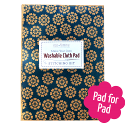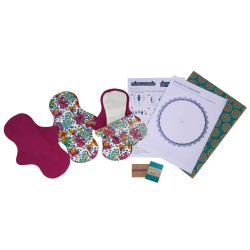 Include: materiali pretagliati per 3 Day Pad Plus, kit di cucito completo, istruzioni per la cucitura e la cura e una tabella di tracciamento del ciclo mestruale.