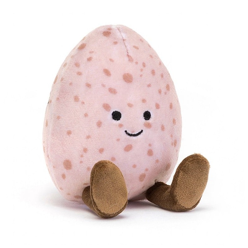 Questo uovo rosa è squisito ha un corpo testurizzato in jersey in un delicato tono rosa. Questo coccolone maculato può sedersi ovunque e avere un aspetto fantastico, e ha stivali di velluto a coste per unirsi alla caccia alle uova di Pasqua!