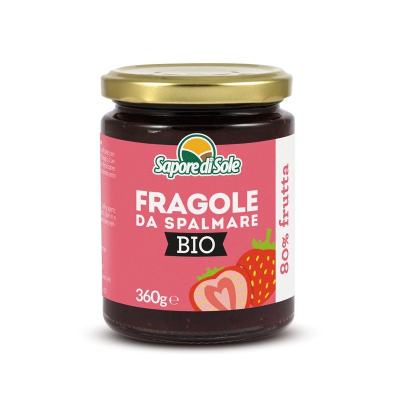 Ingredienti: Fragole*, zucchero di canna*. gelificante: pectina da frutta, acidificante: acido citrico (*Biologico). Frutta utilizzata: 80g per 100g, zuccheri utilizzati: 60g per 100g