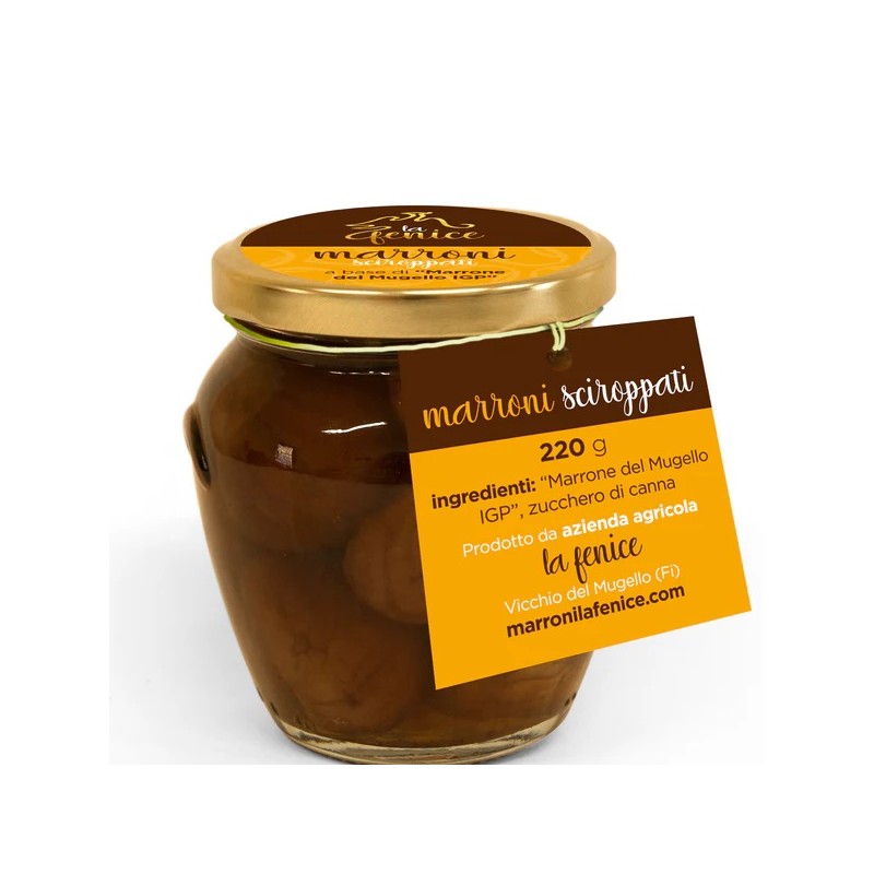 "Marroni del Mugello IGP"*, zucchero di canna*, infuso di semi di finocchio*, anice stellato*, alloro*. *Biologico.
