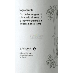 Olio extravergine di oliva, olio di semi di girasole, fiori di Timo.