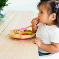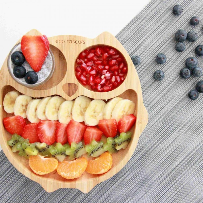 ???? Questo piatto a forma di gufo in bambù ha tre sezioni che supportano e incoraggiano un pasto ben bilanciato.