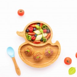 Il piatto a forma di papera è dotato di due ampie sezioni che consentono di prozionare facilmente il cibo e di separare sapori e consistenze.