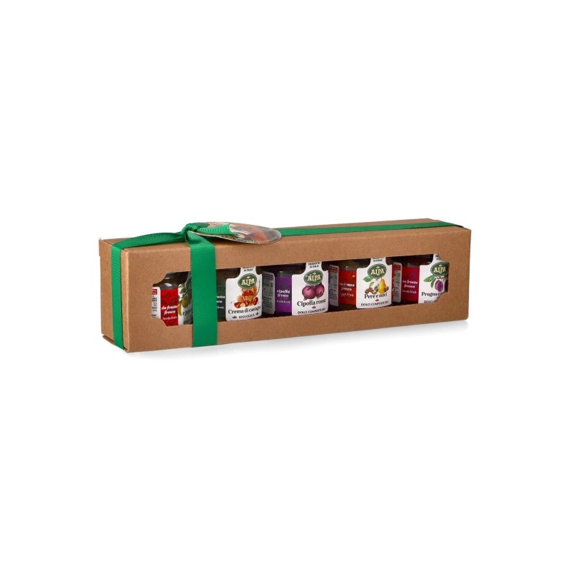 Cinque deliziose confetture biologiche in mini formato racchiuse in una confezione regalo perfetta per le feste. Realizzate con frutta fresca di stagione, senza coloranti né conservanti, queste confetture portano in tavola tutto il profumo e la genuinità della lavorazione artigianale italiana.