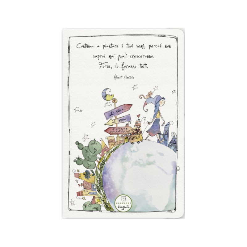 Quaderno A6 con illustrazioni ed aforismi stampato in carta ecologica certificata, plastic free e 100% made in Italy.